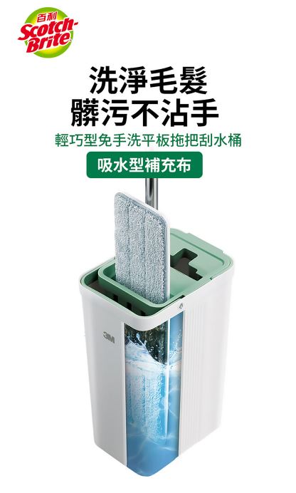 3M百利免手洗平板拖把刮水桶吸水型補充布/2片/包