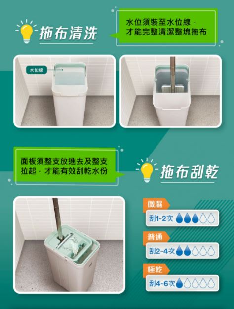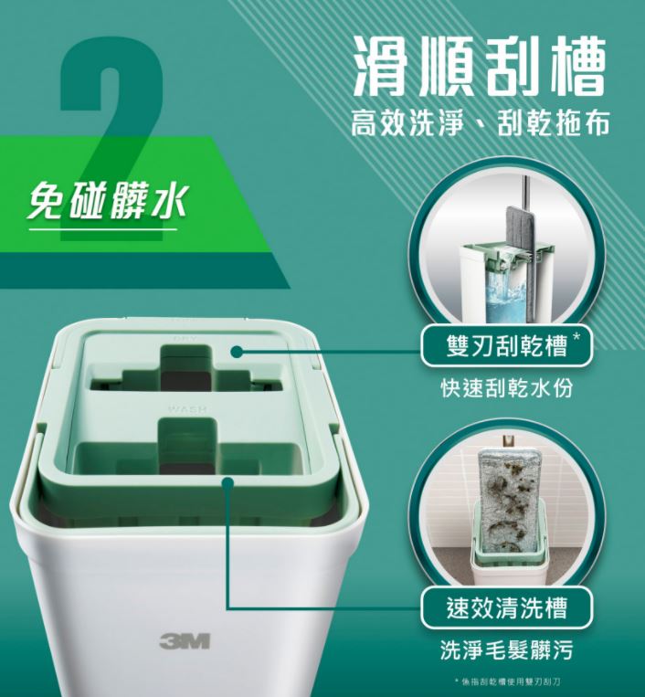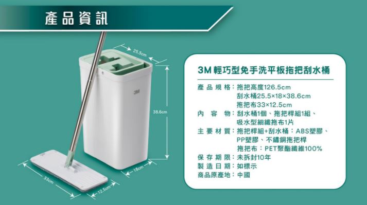 3M百利輕巧型免手洗平板拖把桶-莫蘭迪綠(1桶1桿1布)