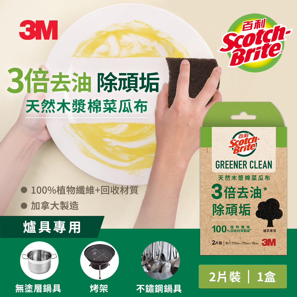 3M 百利天然木漿棉菜瓜布-再生纖維-爐具專用(2片裝)