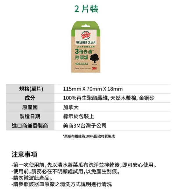 3M 百利天然木漿棉菜瓜布-再生纖維-細緻餐具專用(2...