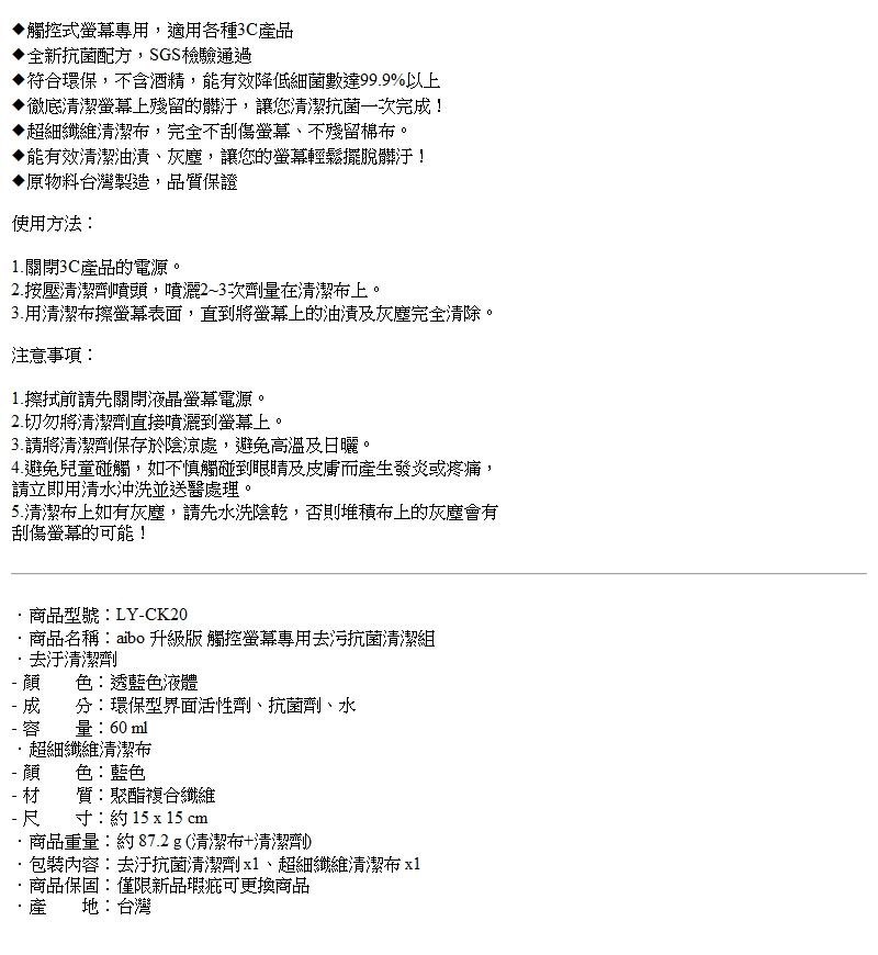 aibo升級版 觸控螢幕專用去污抗菌清潔組