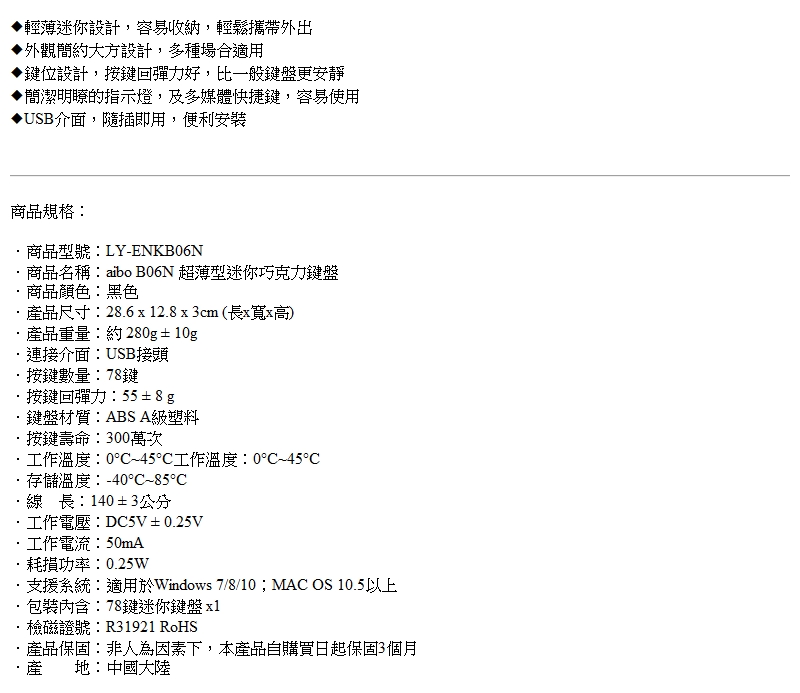 aibo超薄型迷你巧克力鍵盤