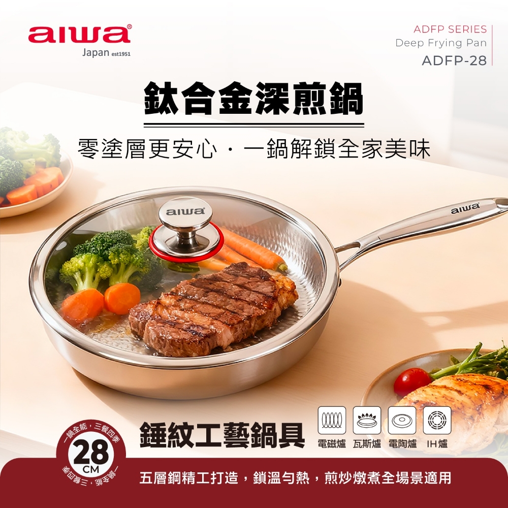 aiwa鈦合金錘紋工藝鍋具 深煎鍋28公分 ADFP-28