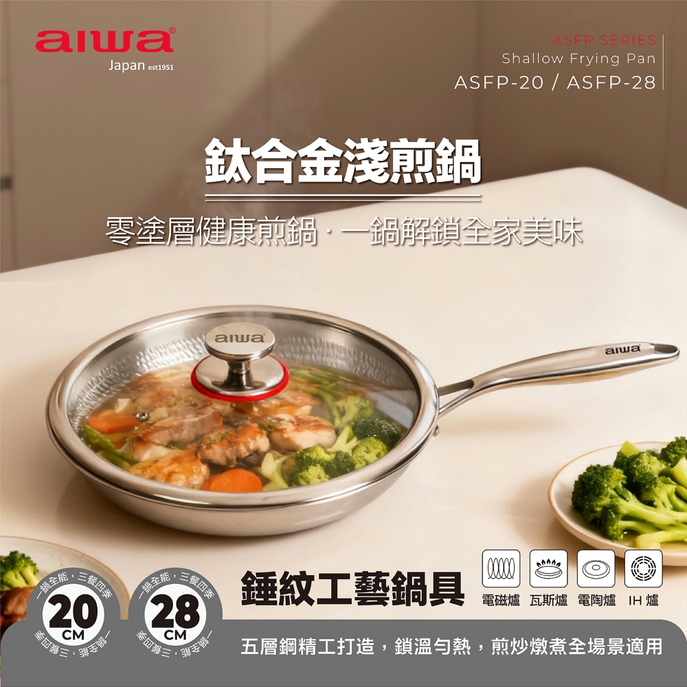 aiwa鈦合金錘紋工藝鍋具 淺煎鍋20 公分 ASFP-20