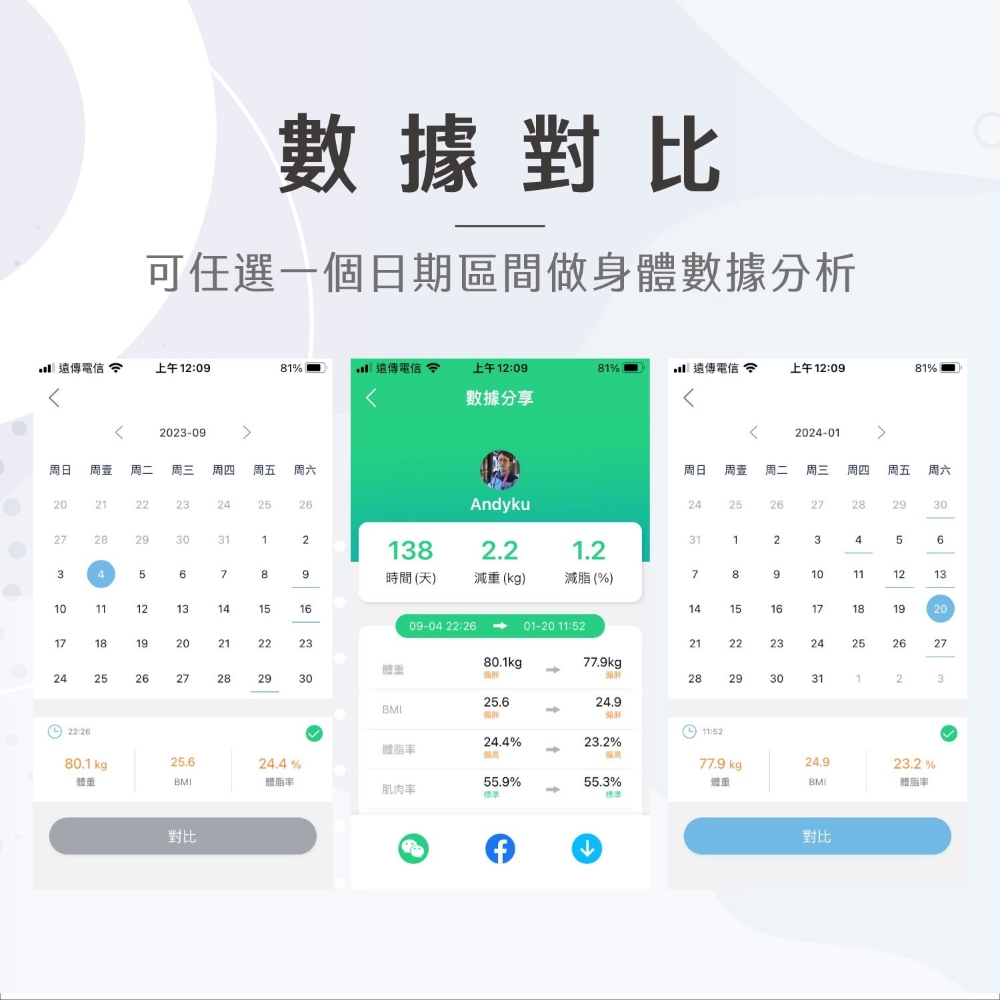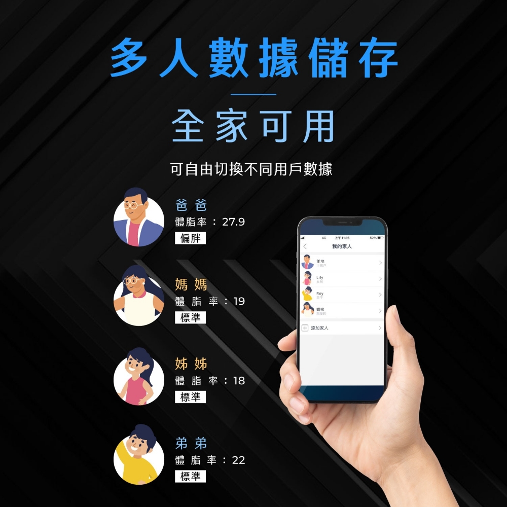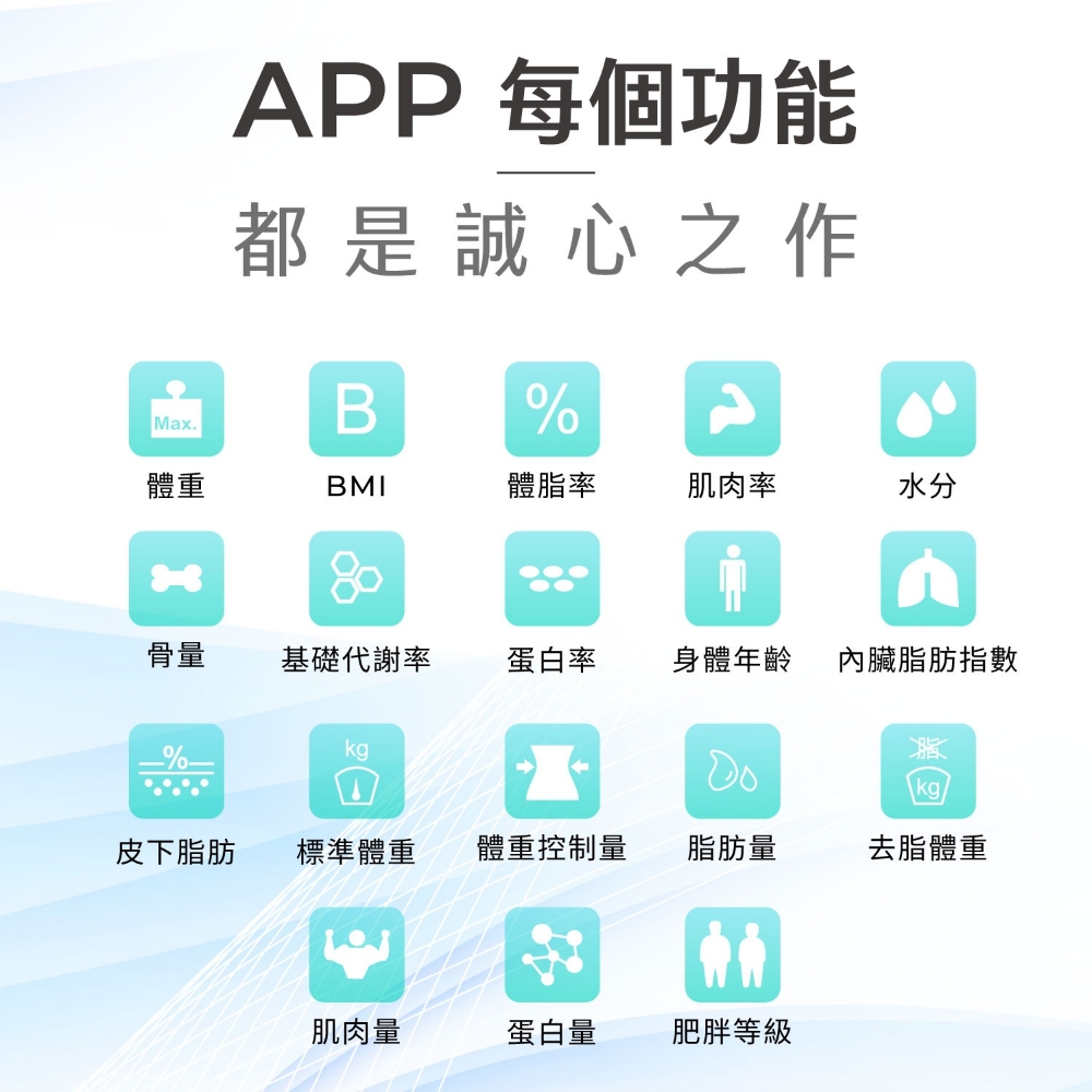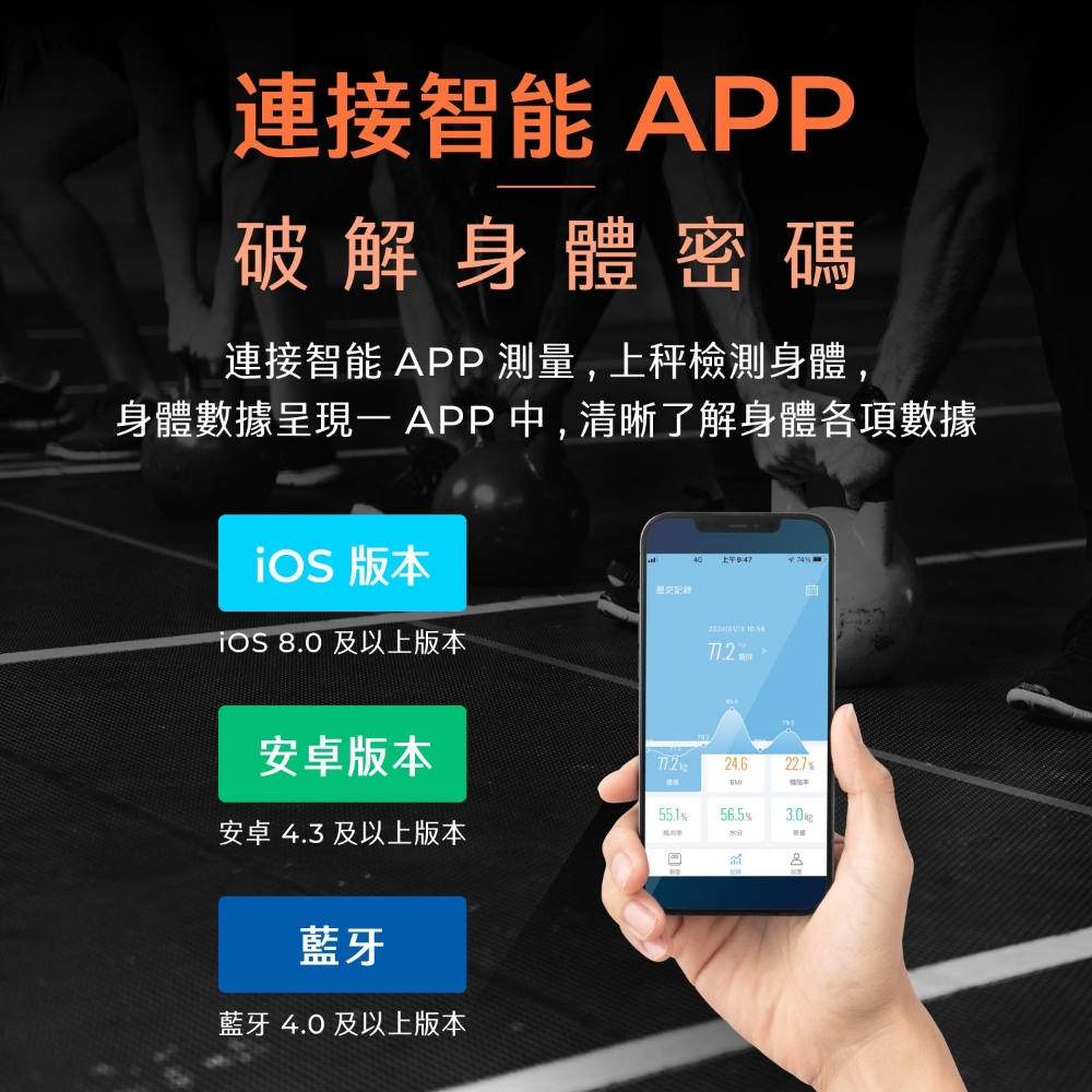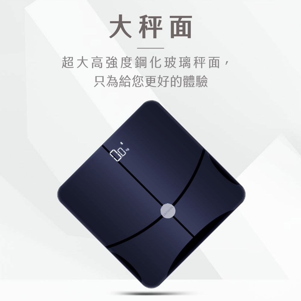 最大稱重:180kg/396lb 使用高精度傳感器 超大安全鋼化玻璃平臺 / 最新ITO鍍膜導電 內建18種智能模式 , 滿足各種需求( 需下載app ) 家庭體重管理 , 多人數據儲存 抱嬰模式 , 家中有嬰兒可使用 超載和低電量提醒自動開機偵測 歷史紀錄 , 記錄身體數據變化曲線