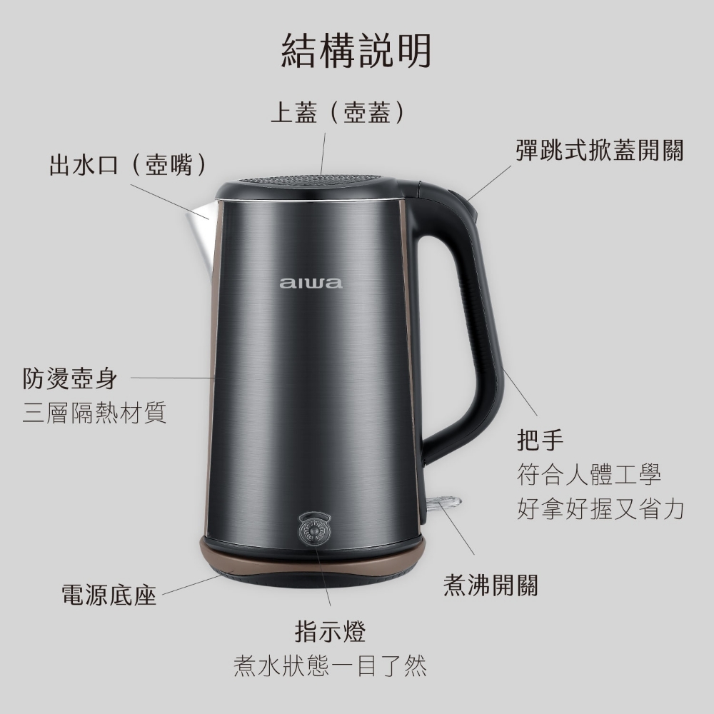 • AIWA 愛華 三層防燙電茶壺 DKS1318黑