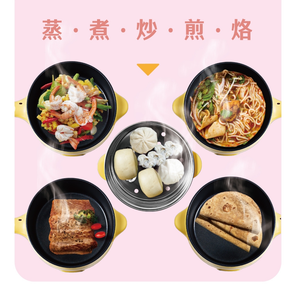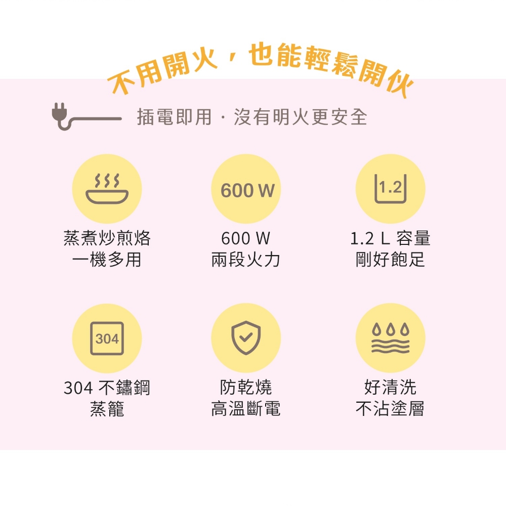 ▇固定防燙長手柄 , 好握好提 ▇不沾黏塗層 , 好清洗 ▇兩段操控304不鏽鋼蒸籠 ▇高溫或乾燒自動跳斷 , 安全有保障 ▇透明玻璃上蓋 , 一目了然 ▇分離式電源線 , 移動方便