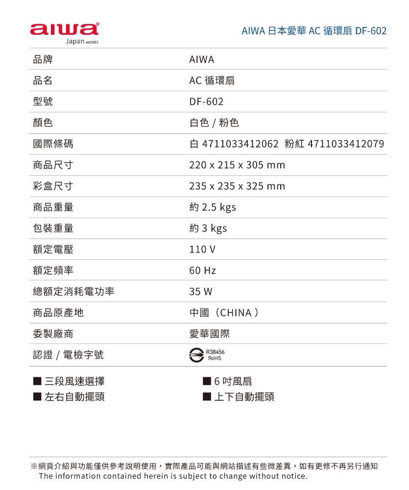 ▇ 三段風速選擇 ▇ 可左右或上下自動擺頭 ▇ 可3D立體循環 , 加速空氣對流 ▇ 6吋風扇 ▇ 輕聲運行