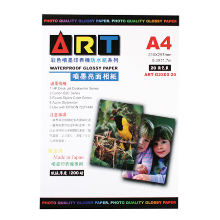 ART防水噴墨亮面相片紙G2200-20/A4/200g/20張/包