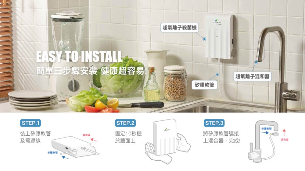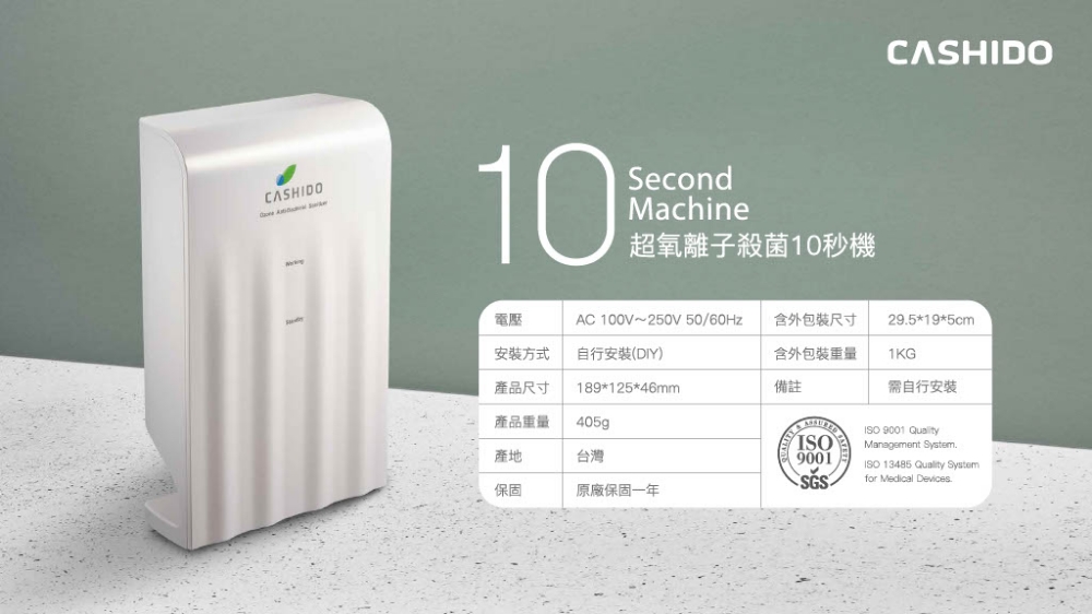 產品功能 抑制細菌高達99% 農藥去除高達75% 異味消除 食物保鮮 一般型規格 體積: 189x125x46mm 重量: 436g +/- 10% 電源輸出: AC 100V~250V 50/60Hz 電壓: DC 12V 體積: 189x125x46mm 重量: 436g +/- 10% 安裝方式: 安裝水龍頭出水口 臭氧功率: 100mg/hr台灣製造 保固: 1 年