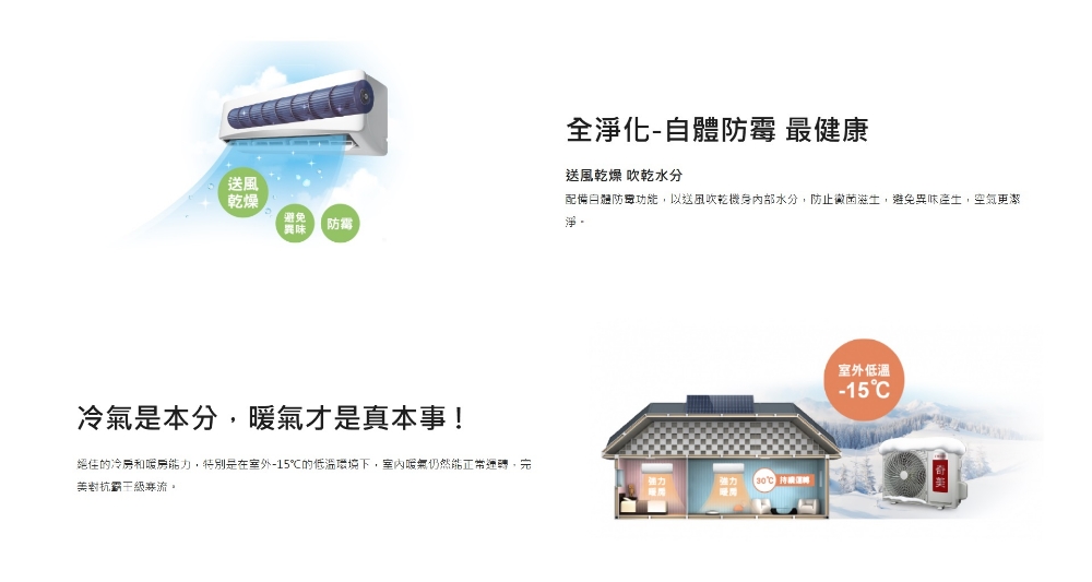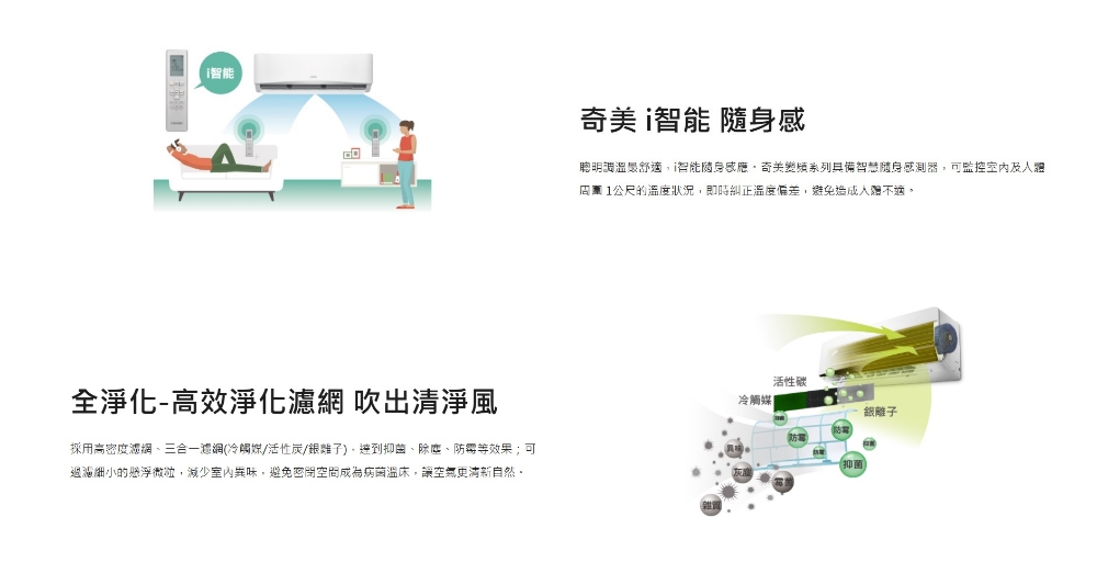 ◆全直流變頻強力5D動力系統 ◆奇美i智能隨身感聰明調溫最舒適 ◆高效防鏽金鰭片耐用壽命長