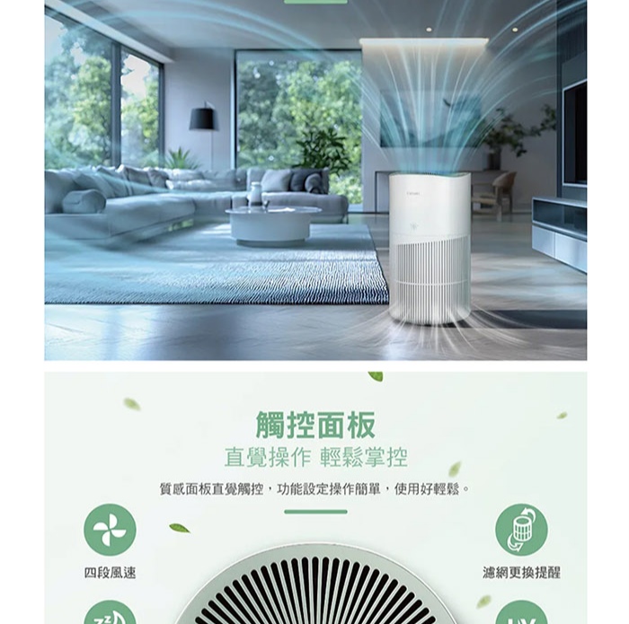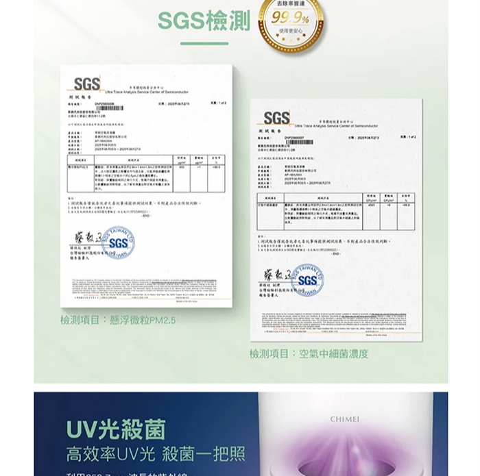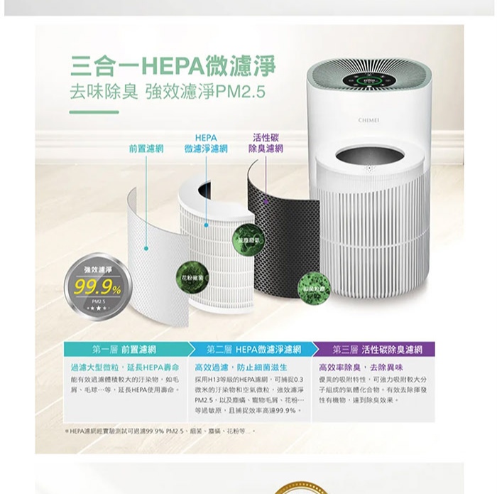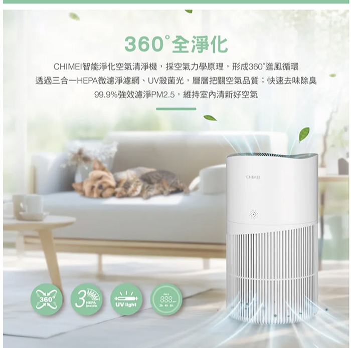 • CHIMEI 奇美 波波淨20坪 智能淨化大坪數專用清淨機/HEPA H13/UV光殺菌/DC靜音馬達(AP-16HUWH)