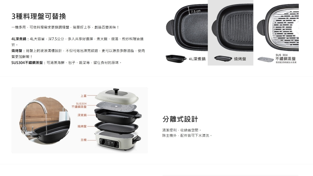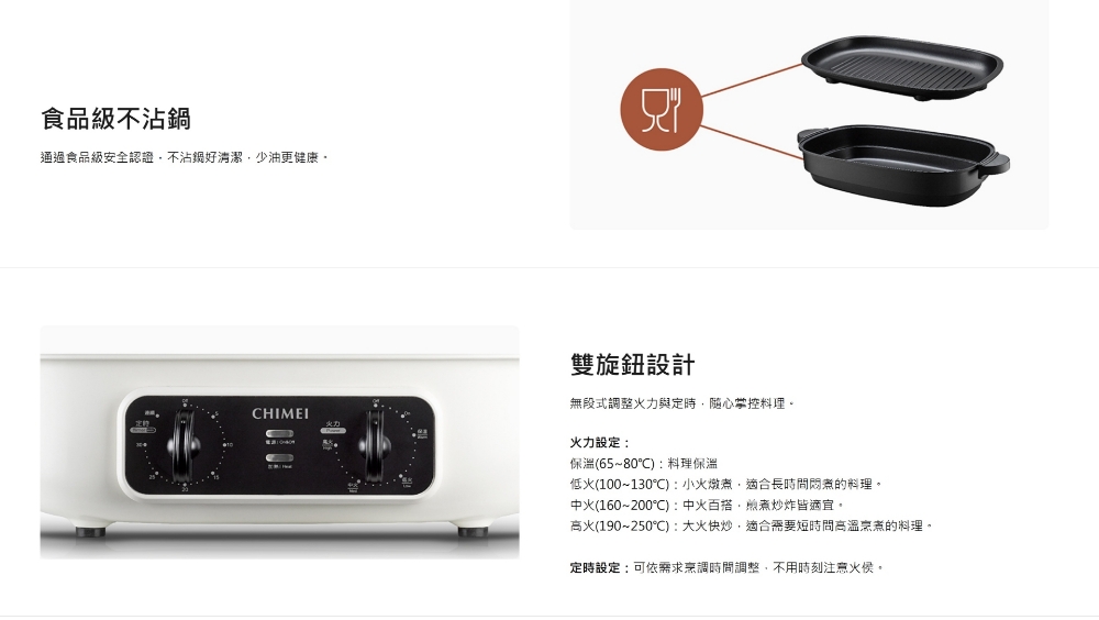 品牌名稱:CHIMEI 奇美 類型:主體 顏色:白色 保固期:1年保固期 商品規格 型號:HP-13BT0K 產地:中國 商品尺寸(材積):L460 xW259 x H240 mm 容量:4L定時:30分鐘 電壓:110V頻率:60Hz 產品重量:4.8kg容量:4人份 內鍋材質:304不鏽鋼 配件:深湯鍋、燒烤盤、304不銹鋼蒸盤 消耗功率:1300W BSMI:R39344 依原廠公佈或保證書為準;使用前,請詳閱商品說明書/保固卡內容;保固期內/保固期後皆請自行寄回原廠維修;零件、耗材非保固範圍;若原廠判定屬人為因素導致商品毀損或故障,需酌收維修費用,謝謝 |