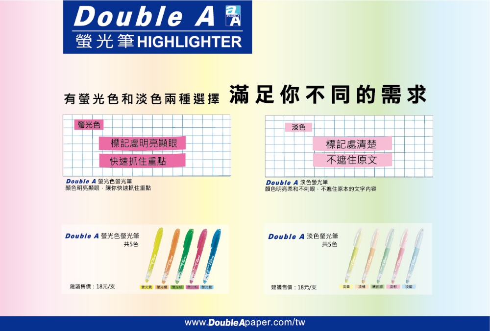 Double A螢光筆/平頭/薄荷綠/4mm