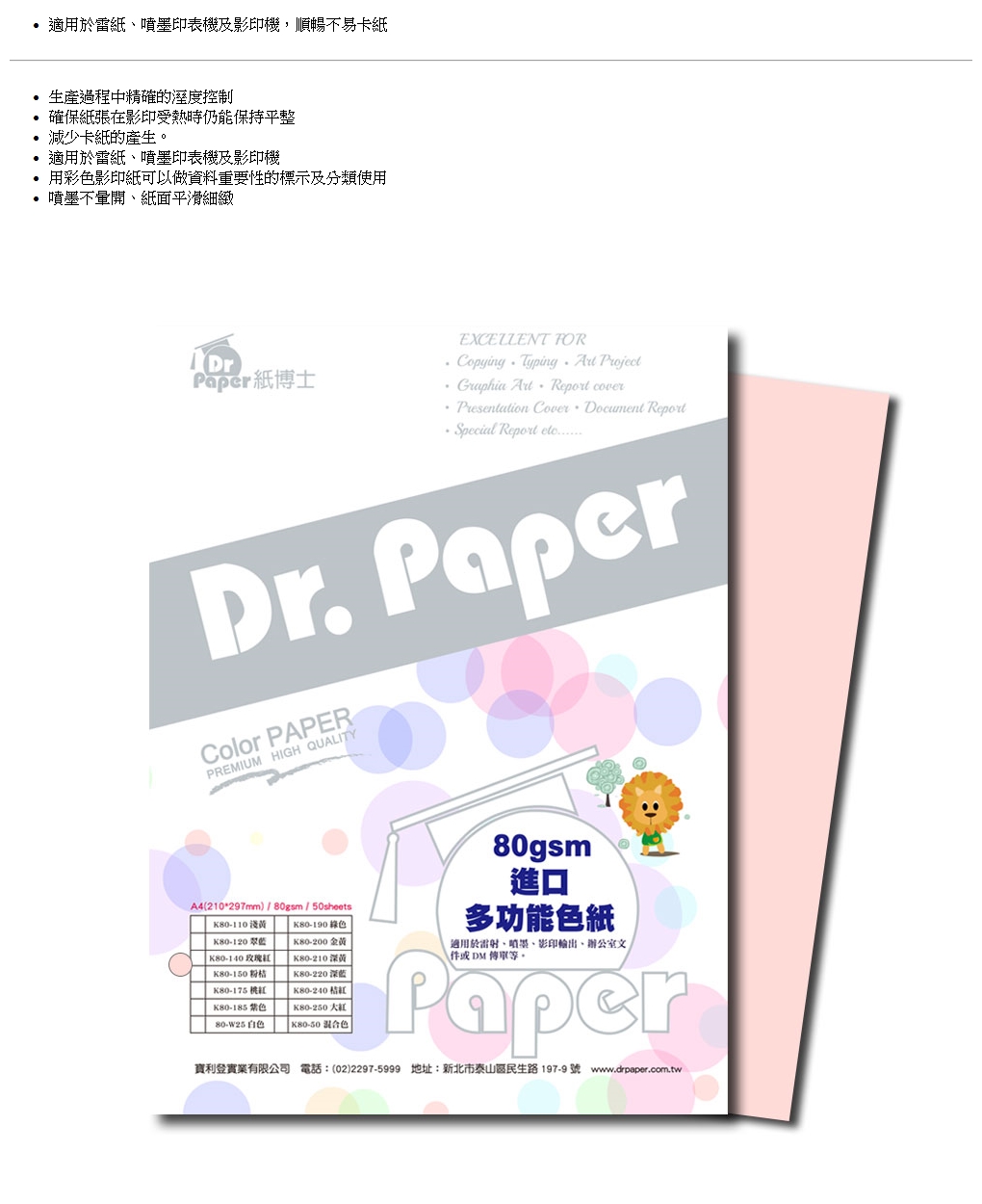 Dr.Paper多功能色影印紙/A4/80g/玫瑰紅/50張/包