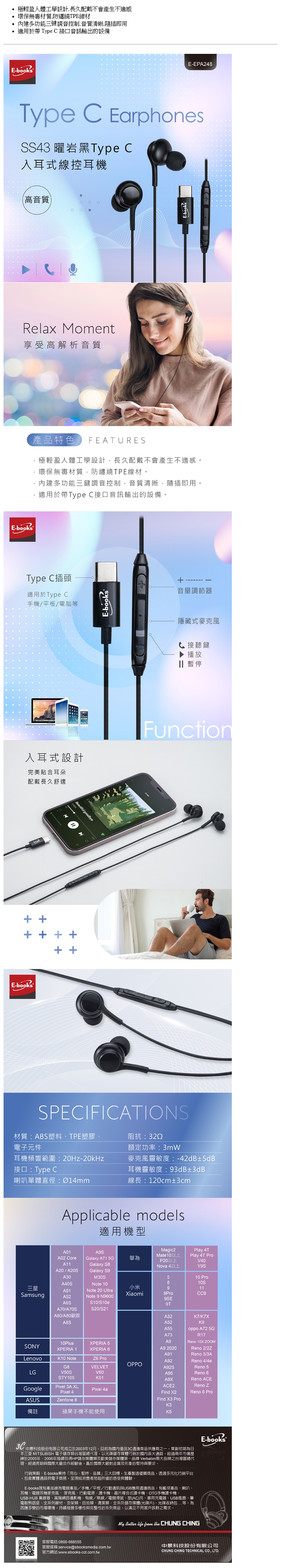 E-books入耳式線控耳機