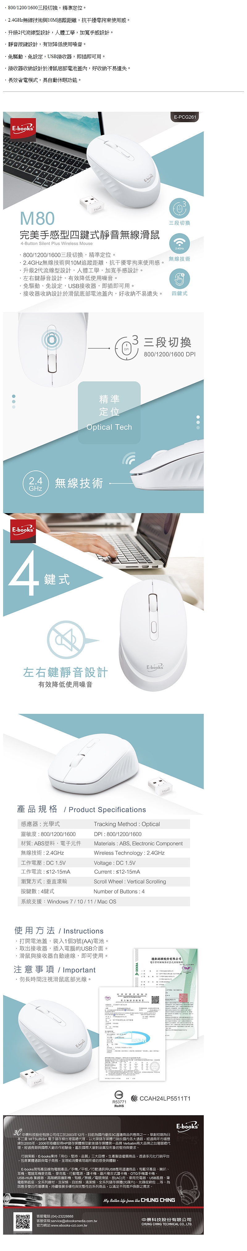 E-books四鍵式靜音無線滑鼠