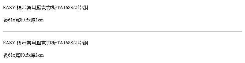 EASY橫式標示架壓克力板/TB-145S專用/2片/...