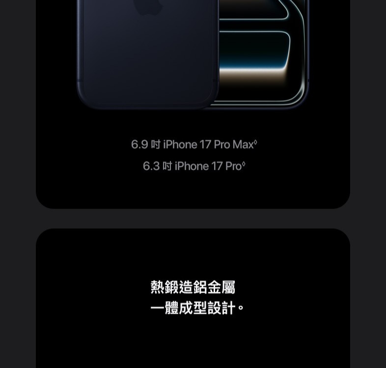 iPhone 17 Pro 顯示器的圓角具有優美的曲線設計,並呈現在一個標準矩形之內。以標準矩形量測時,螢幕的對角線長度為 6.27 吋
