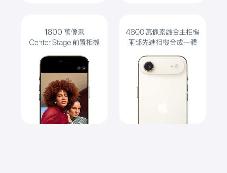 4800 萬像素融合主相機:26 公釐、ƒ/1.6 光圈、感光元件位移式光學影像穩定功能、100% Focus Pixels、支援超高解析度照片 (2400 萬像素與 4800 萬像素)