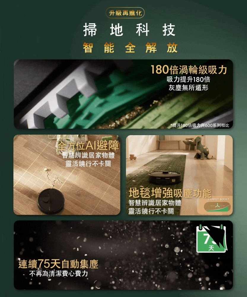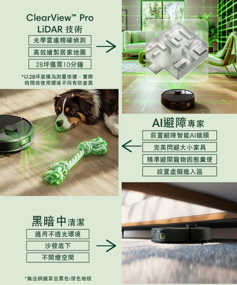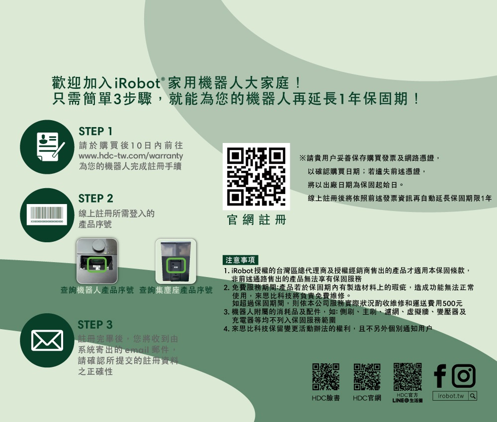 ★注意:可跨越約 2cm 門檻或地毯 (誤差範圍正負0.2公分, 需以實際情況而定,有疑問可先詢問) ★注意:黑色深色地板不能使用 ★注意:機器人使用前需要使用Roomba Home App與WiFi連線完成設定才能後續使用 |