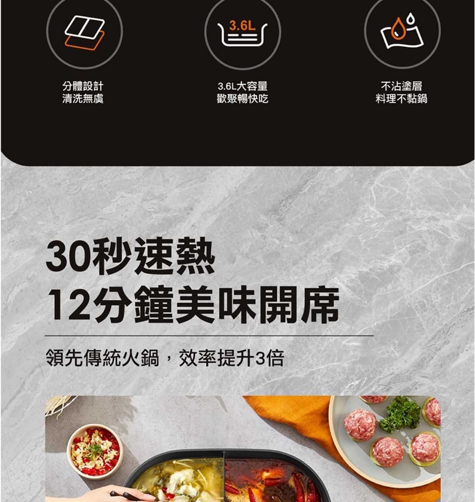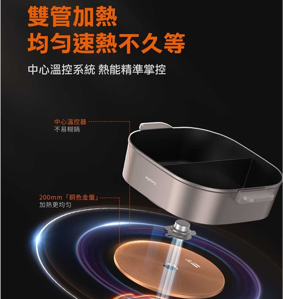 🍜1600W大火力 🍜6L大容量鴛鴦鍋 🍜三重火力控制 🍜30秒速熱 🍜隔熱防燙把手