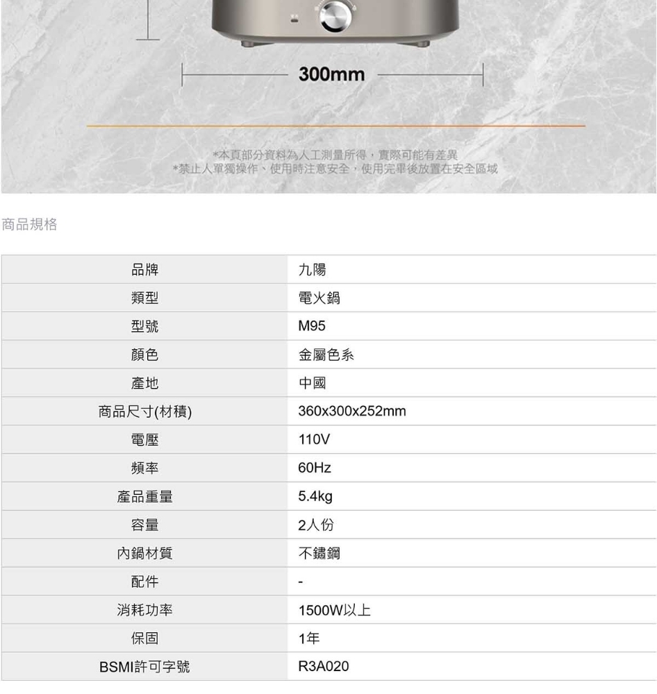 JOYOUNG 九陽多功能鴛鴦電火鍋(M95)