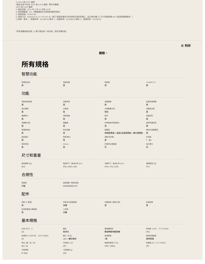 除濕公升數 12L(公升)以上