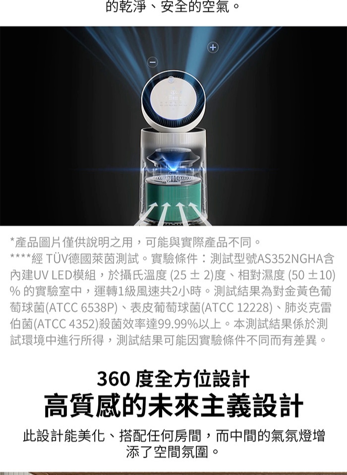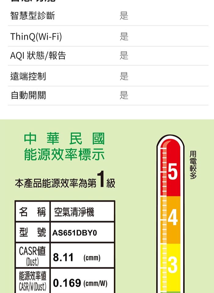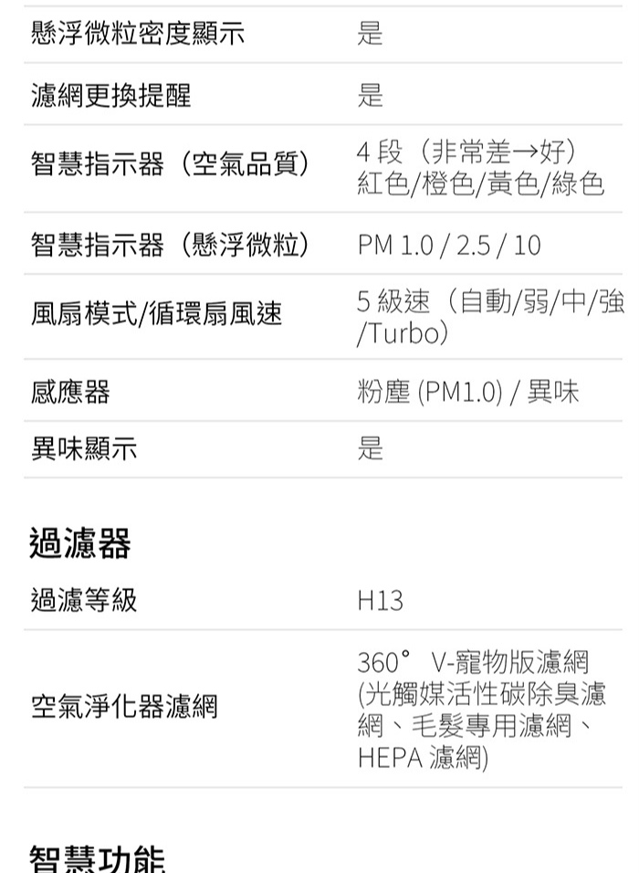 智慧指示器(空氣品質): 4 段(非常差→好)紅色/橙色/黃色/綠色