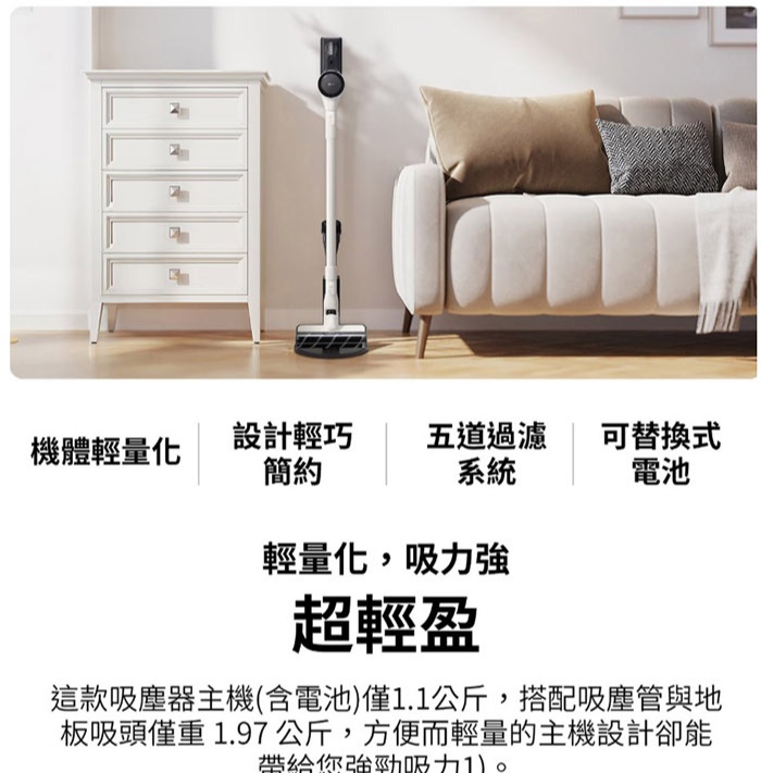 🎈超輕盈/機體輕量化 🎈超美型/精緻收納立架 🎈超便利/隨拆即吸隙縫吸麈管