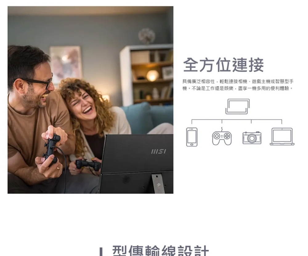 • MSI 微星PRO MP165 E6 可攜式螢幕 (16型/FHD/Type C/喇叭/IPS)+LED觸控護眼螢幕掛燈 33cm款