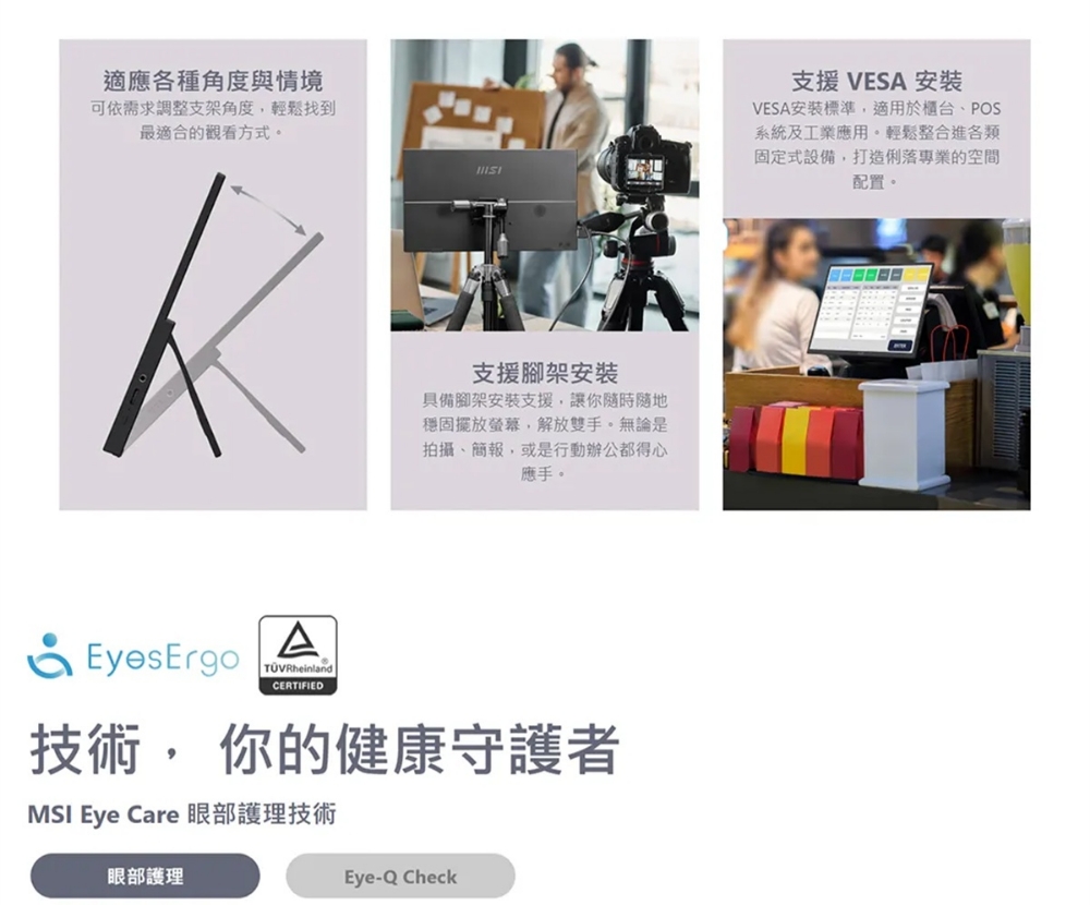 MSI 微星PRO MP165 E6 可攜式螢幕 (16型/FHD/Type C/喇叭/IPS)+LED觸控護眼螢幕掛燈 33cm款 圖片