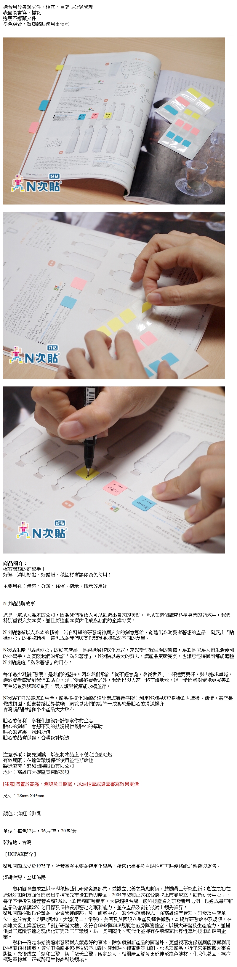 N次貼分類索引片/66534/28x45mm/3色/36片/包