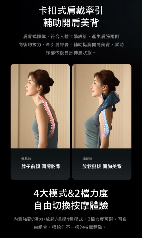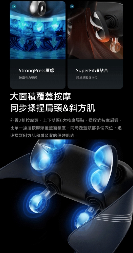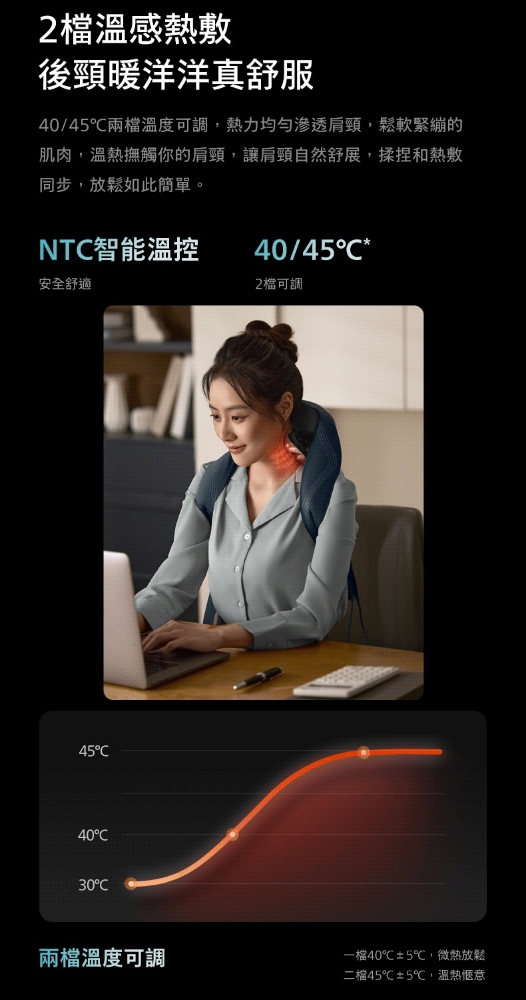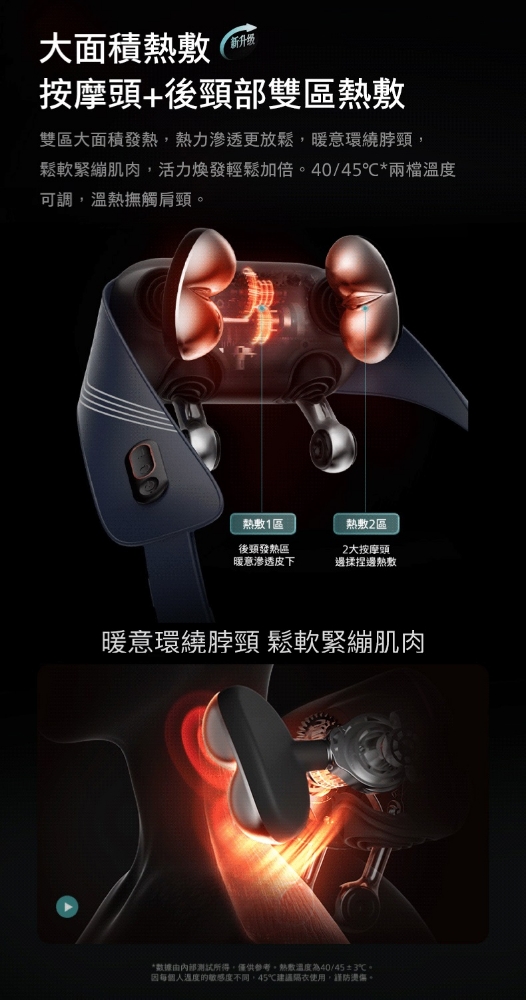 多手法按摩 6大按摩頭同時按、揉、推、刮多手法 2檔熱敷可調 大面積熱敷 金屬材質按摩頭