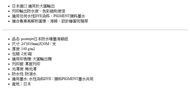 Posterjet日本防水噴墨海報紙/170g/24吋...