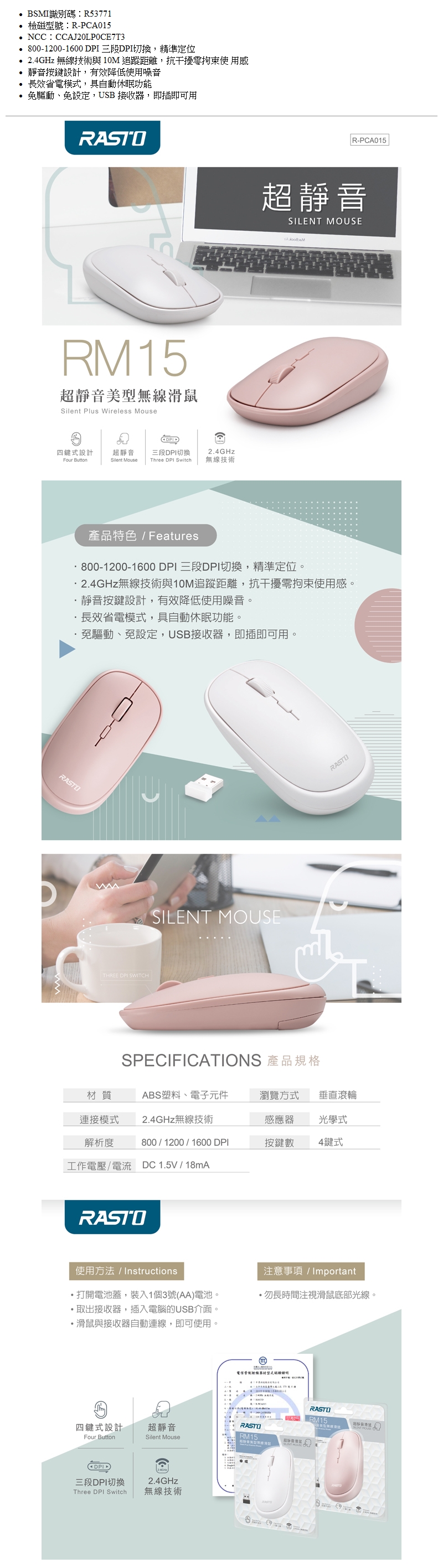RASTO超靜音無線滑鼠