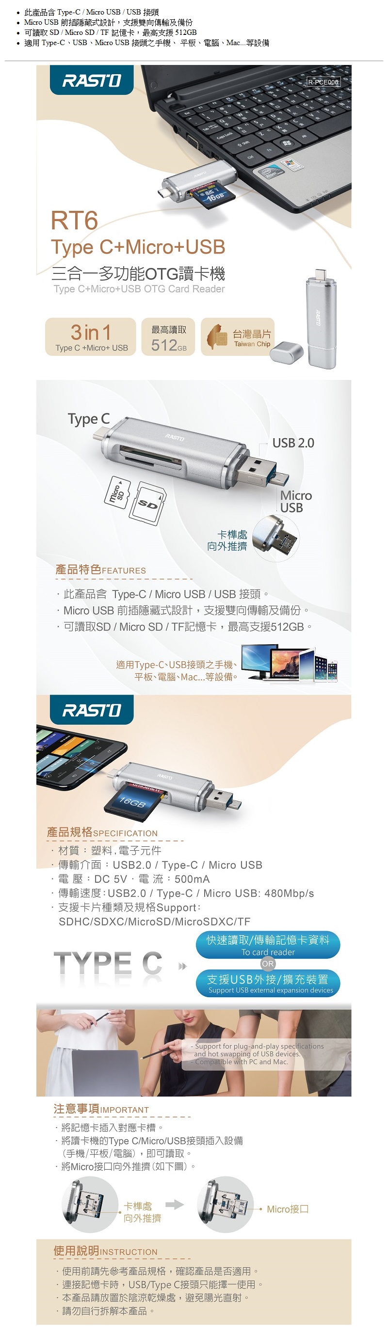RT6/Type C+Micro+USB