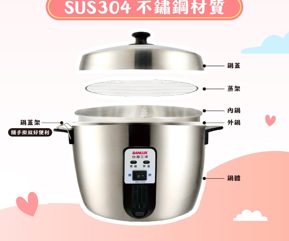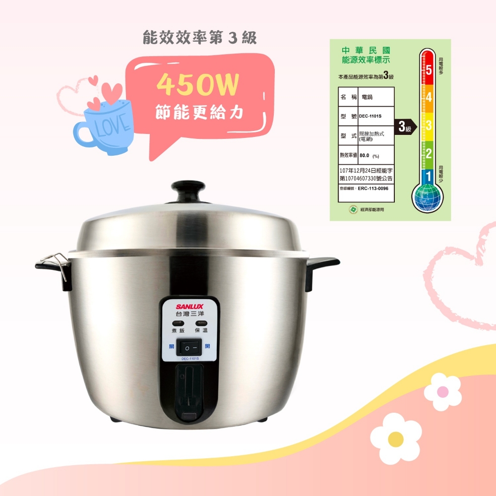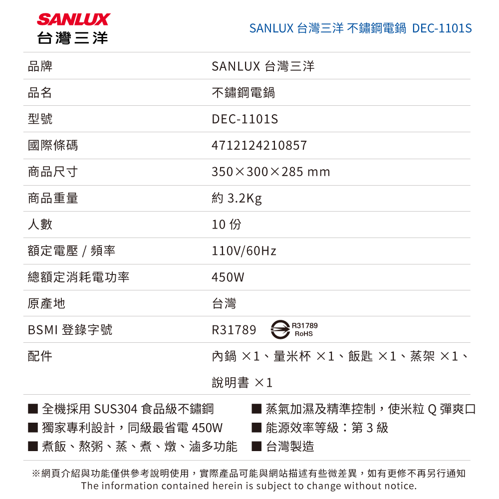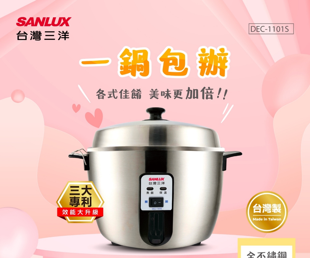 SANLUX台灣三洋不銹鋼10人份電鍋-DEC-1101S
