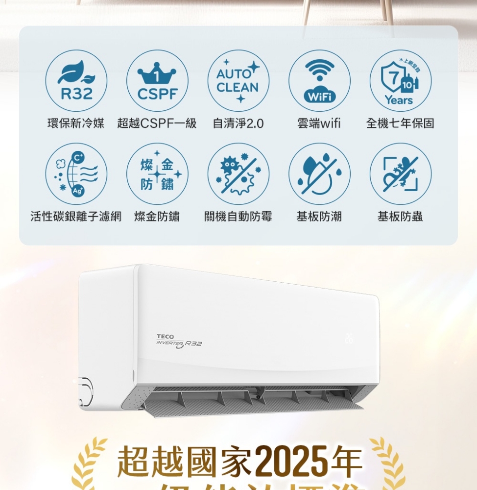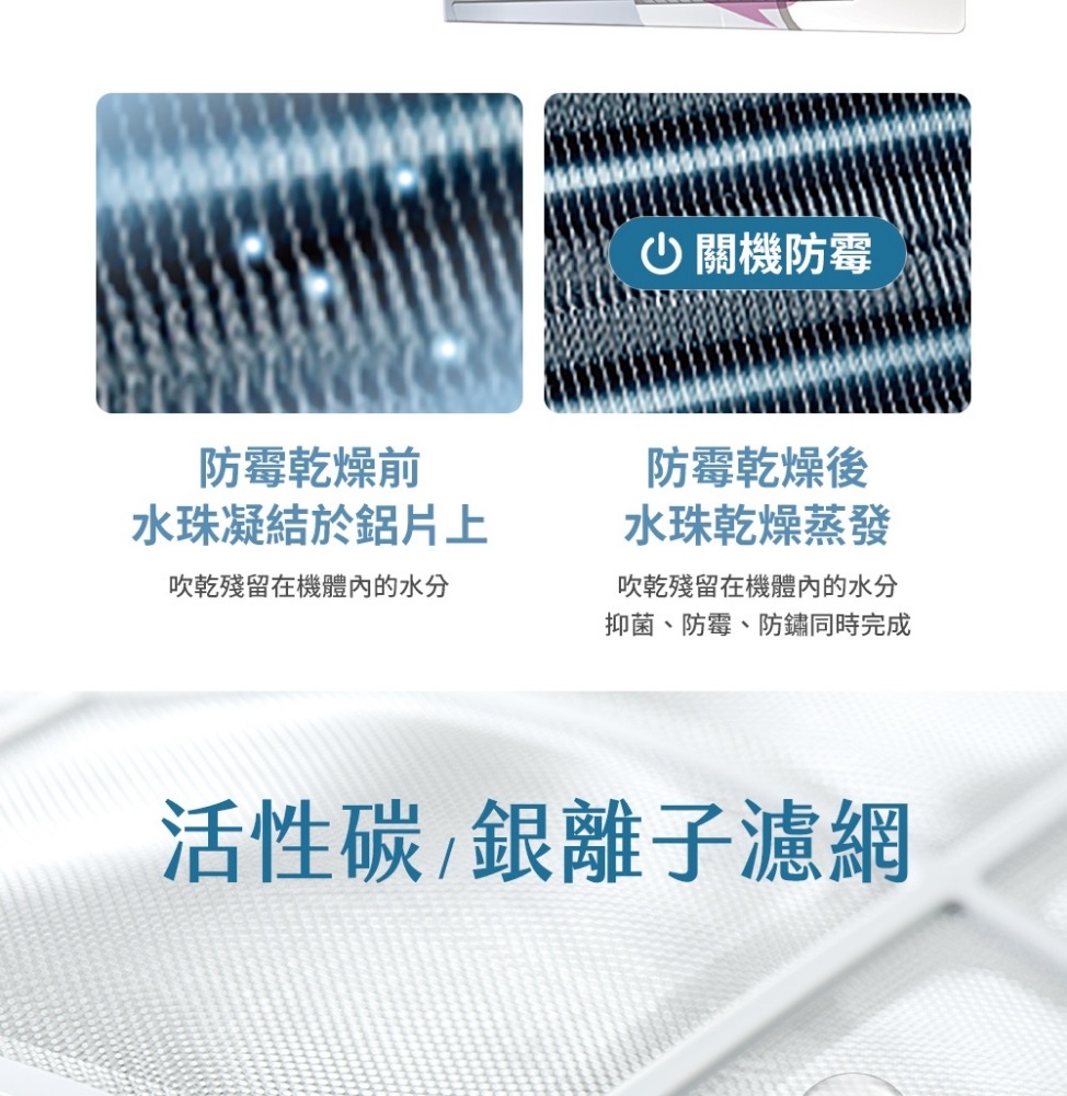 ․沉浸式空調(微風感) ․全系列提前超越2025超越一級 ․超大螢幕高級多功能遙控器 ․內外機燦金防鏽 ․高耐腐蝕鍍鋅鋼板+超厚多層粉體塗裝 ․基板防潮防塵防蟲 ․內外自清淨(內機+外機自清淨)-抑菌99% ․3D氣流全室循環(上下左右自動氣流) ․關機防霉 ․銀離子/活性碳濾網 ※全機7年保固(壓縮機10年保固) *含基本安裝,5米內以明管方式施工 *安裝費用以安裝人員現場評估為主 ❌離島不安裝和不配送