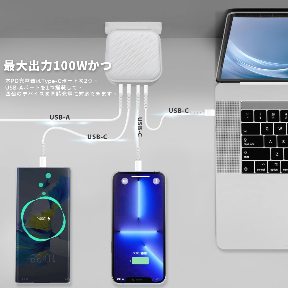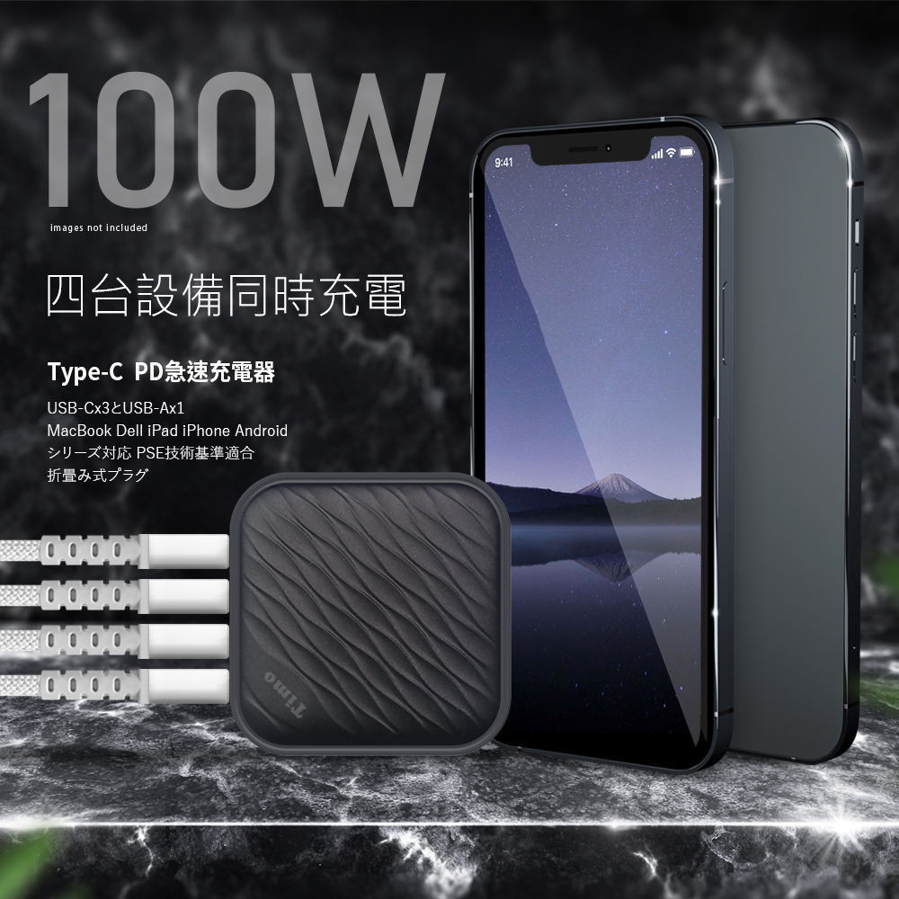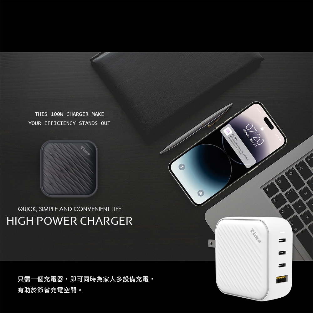 • Timo-100W氮化鎵GaN USB-C四孔浪紋造型快速充電器